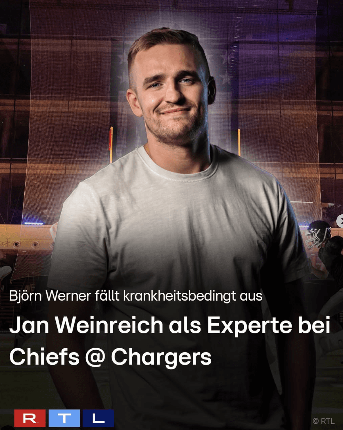 Jan Weinreich ist ehemaliger Quarterback und seit 2023 als „Community Host“ fester Bestandteil der NFL-Berichterstattung bei RTL.